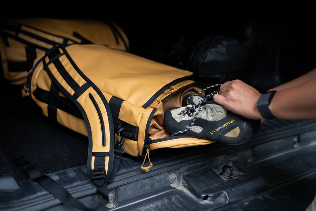 "CARRYALL Duffel" veikia su papildomais "CARRYALL" kuprinės diržais ir kitais WANDRD priedais, be to, siūloma įvairių spalvų.