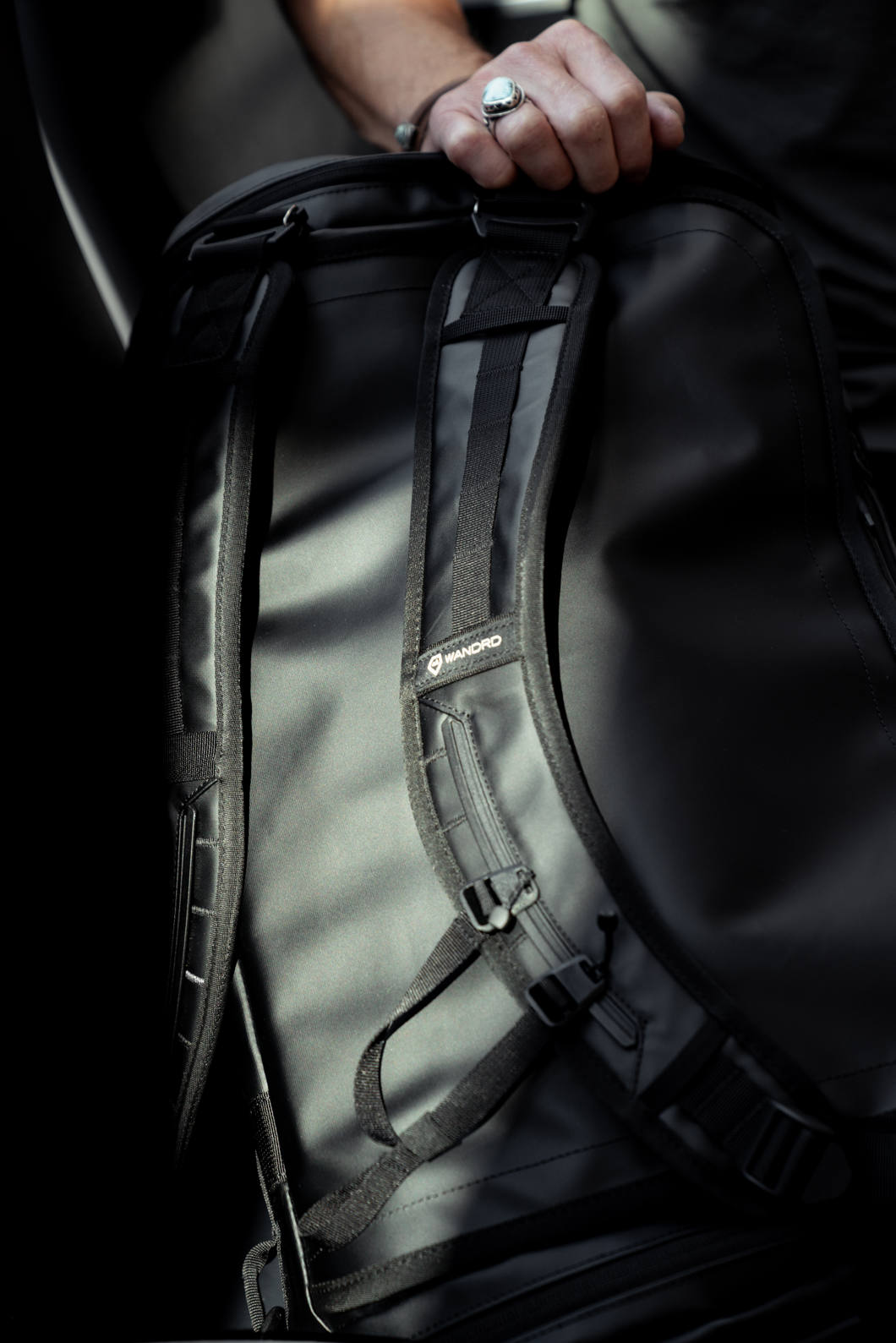 "CARRYALL Duffel 60L" yra suderinama su "CARRYALL" kuprinės diržais ir kitais WANDRD priedais, taip pat yra kelių spalvų.