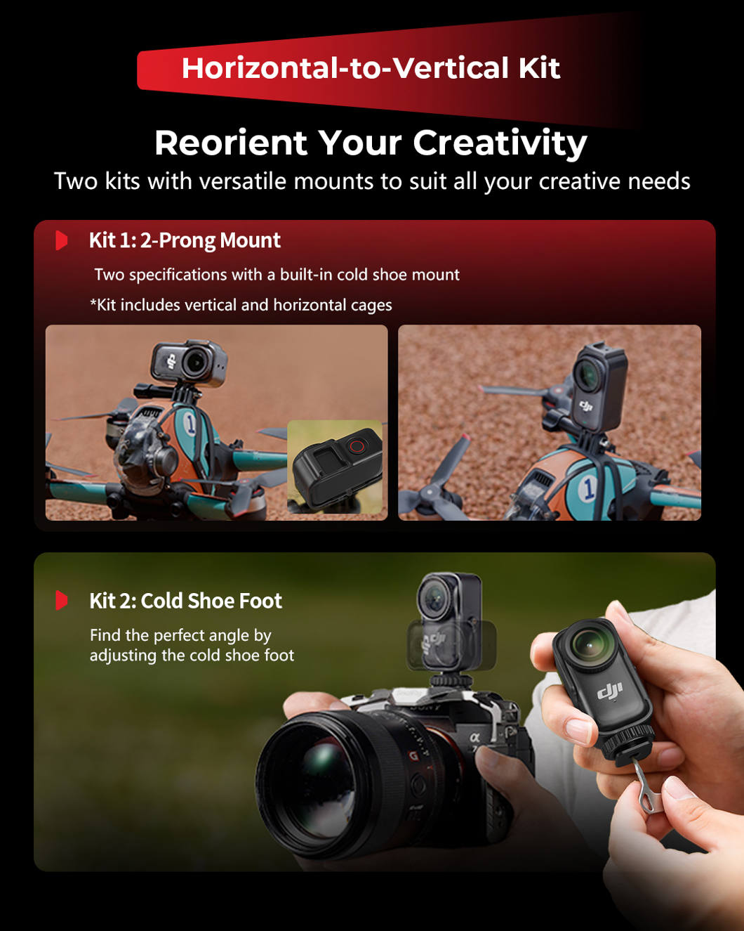 A professional shooting accessory designed for content creators. It enables instant switching between landscape and portrait orientations to optimize content for different social platforms like YouTube (landscape) and TikTok / Instagram Reels (portrait). The kit includes dedicated horizontal and vertical cages that users can quickly interchange based on shooting scenarios.