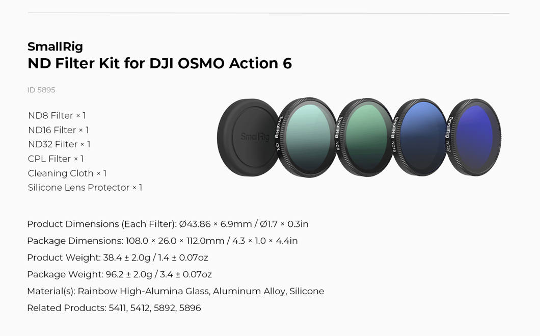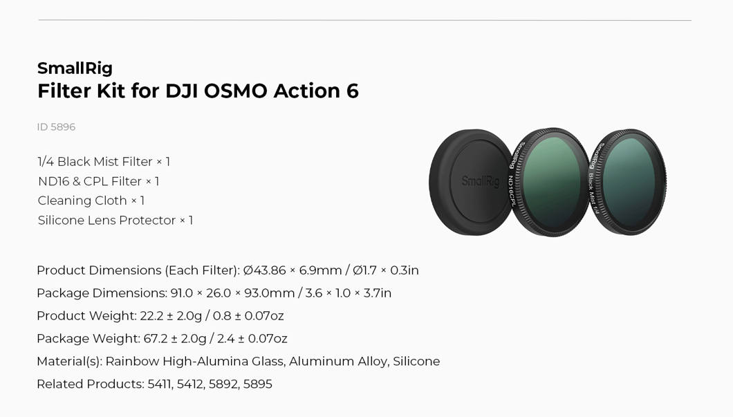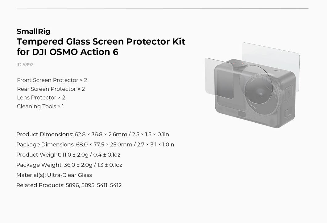 5892 Tempered Glass Screen Protector Kit for DJI Osmo Action 6