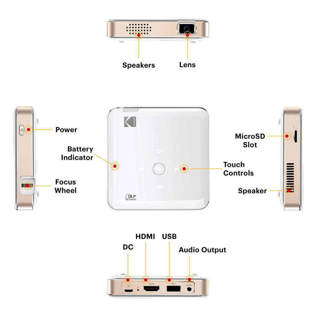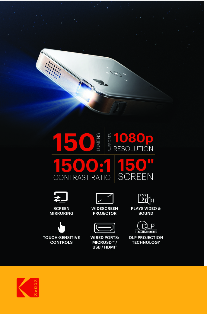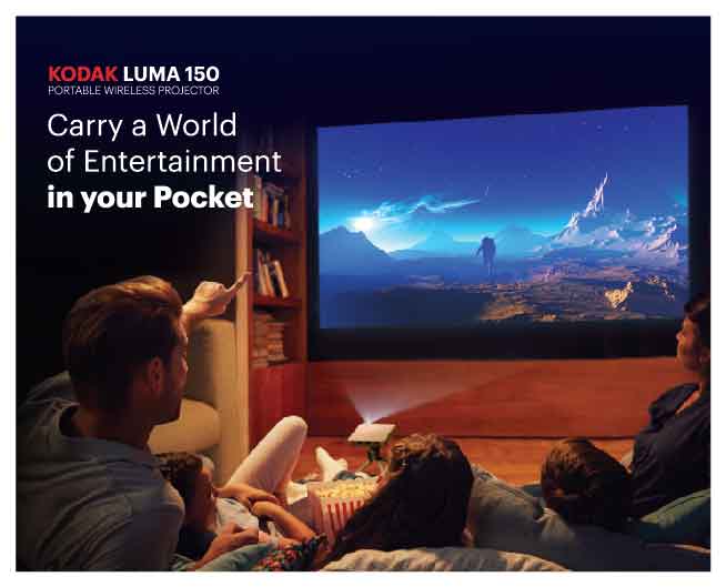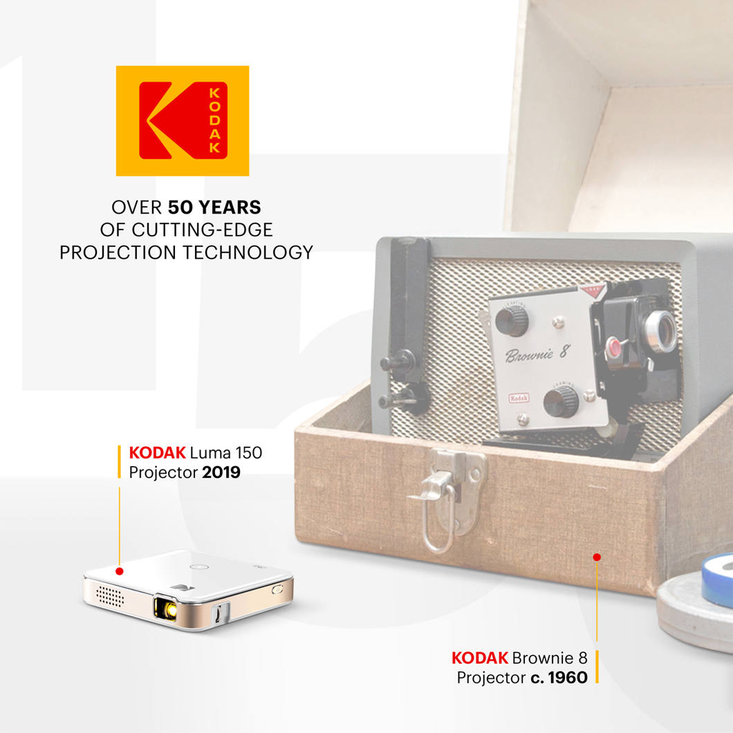 "Kodak Luma 150" yra nešiojamasis mini projektorius su DLP technologija, projektuojantis 16:9 formato vaizdą iki 120 colių dydžio. Jis užtikrina iki 2,5 val. baterijos veikimo laiką ir palaiko atkūrimą per "microSD", USB arba HDMI. Belaidis ekrano dubliavimas galimas per "AirPlay" ir "Miracast", skirtas "Android", "iOS" ir "Windows 10" įrenginiams. Apatinėje dalyje yra standartinis trikojo laikiklis, kad galėtumėte stabiliai nustatyti padėtį.